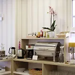 Hotel was zeer net, gratis WiFi. Ontbijtmogelijkheden waren warm, ik heb dat op prijs gesteld. De kamer was groot en had uitzicht op de lichtput. Een comfortabele locatie voor een kort verblijf. Bovendien was het niet te ver weg van place de la Mairie, vergeet het niet te bezoeken.